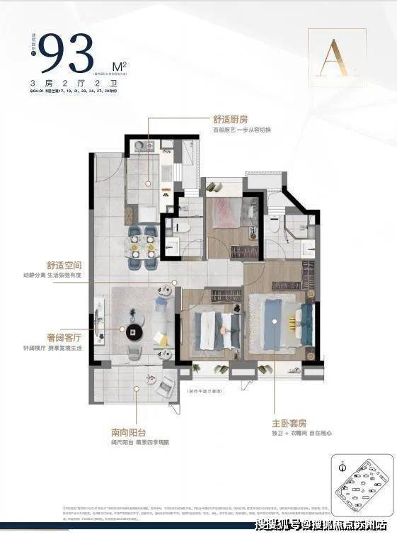 建筑面积约93㎡户型做到三房两厅两卫,比别人“多一卫”的设计,让三代同堂依然从容有度,更高性价比收获大宅生活感。让空间功能性、舒适度足以媲美市面上100㎡+户型。南向三面宽,拥有更多采光面,LDK一体化,打破空间界限,生活大有享法。