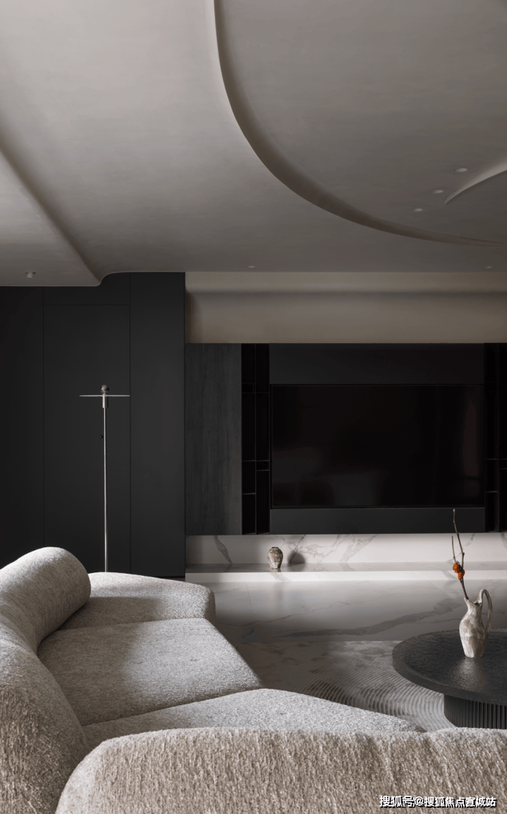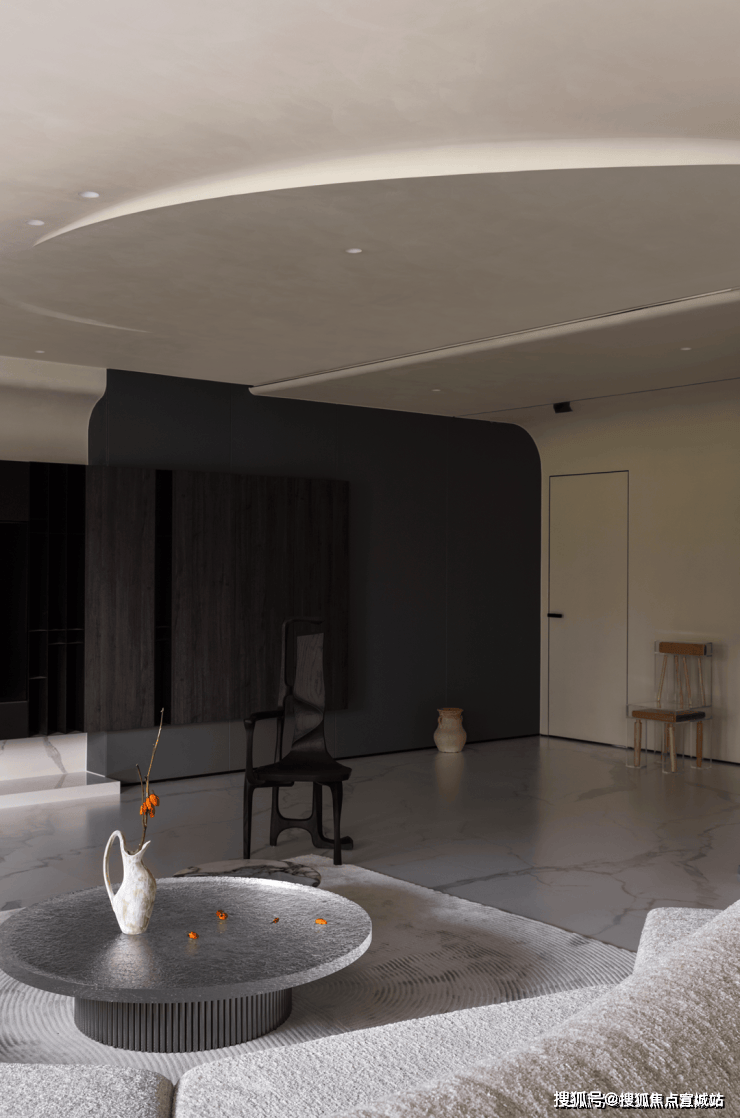 高级黑的纯粹静谧,营造出沉稳且个性的现代质感,松软的布艺家具、粗粝的陶器、永生的植物等简素物体,共同点缀着室内空间,创造出一种可感知、充满包容性的场域。