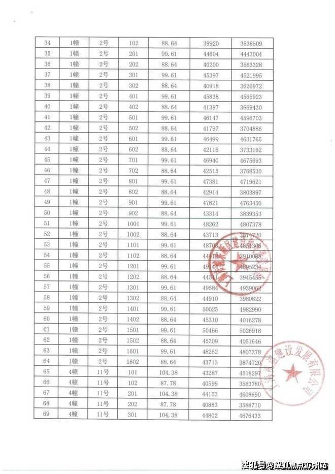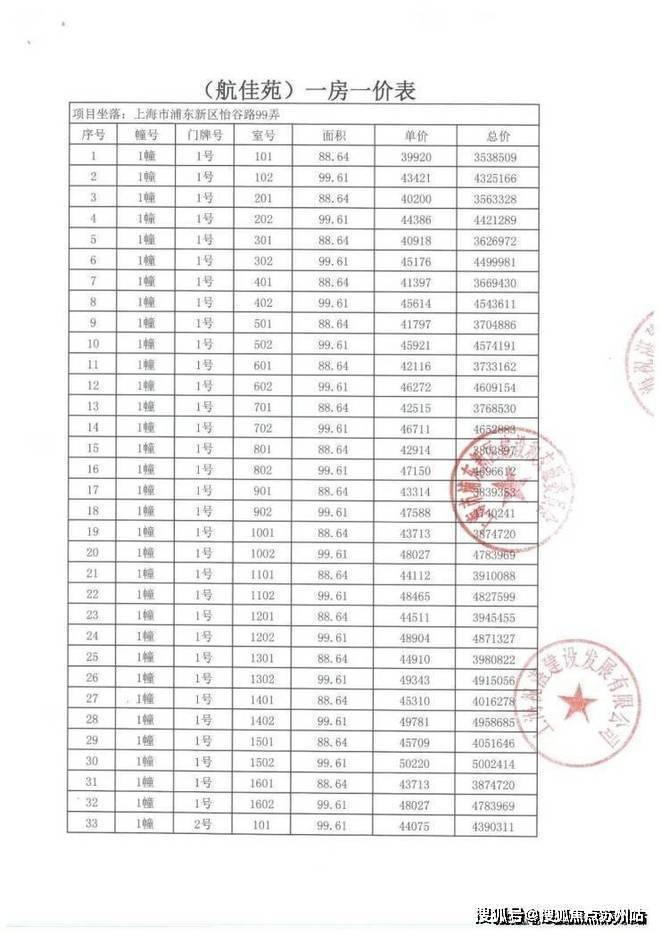 项目一房一价表