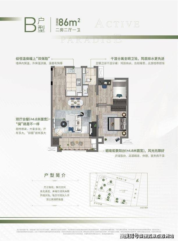 宝业活力天境售楼处电话:400-8123-664卧室做到了一南,一北,南向卧室约11.2㎡,且有飘窗设计,享受阳光沐浴.宝业活力天境售楼处电话:400-8123-664