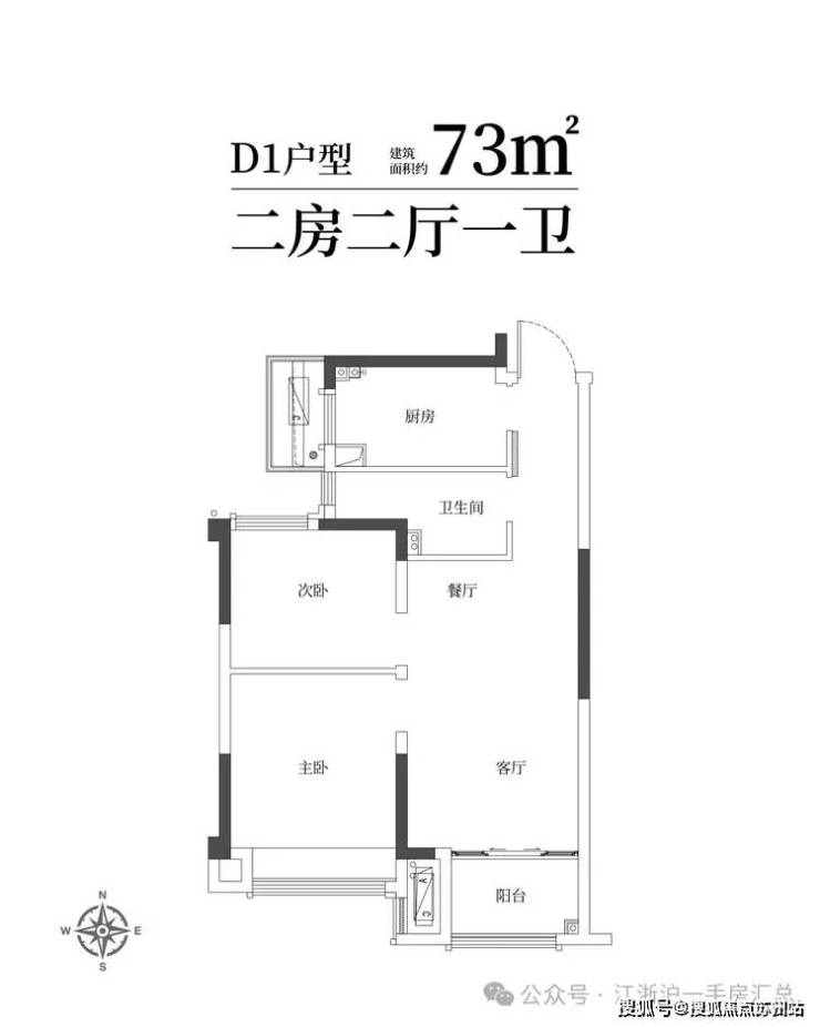 建筑面积约73㎡舒适两房一卫,年轻家庭的向往