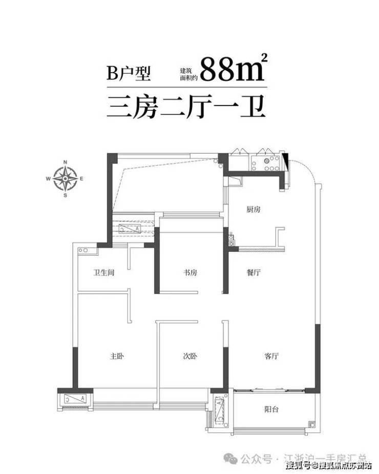 建筑面积约88㎡精雅三房一卫,三口之家理想