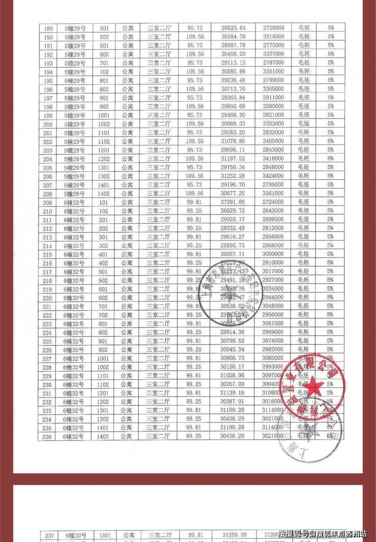 项目一房一价表