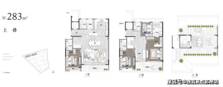 叠墅建面约265-354㎡,每个户型都非常阔绰,尺度感十足↓↓