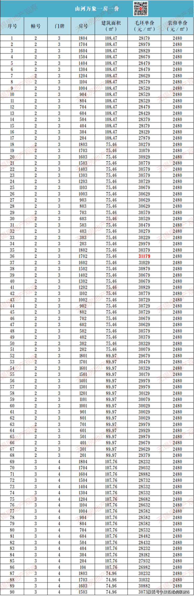 爱情山河万物一房一价表: