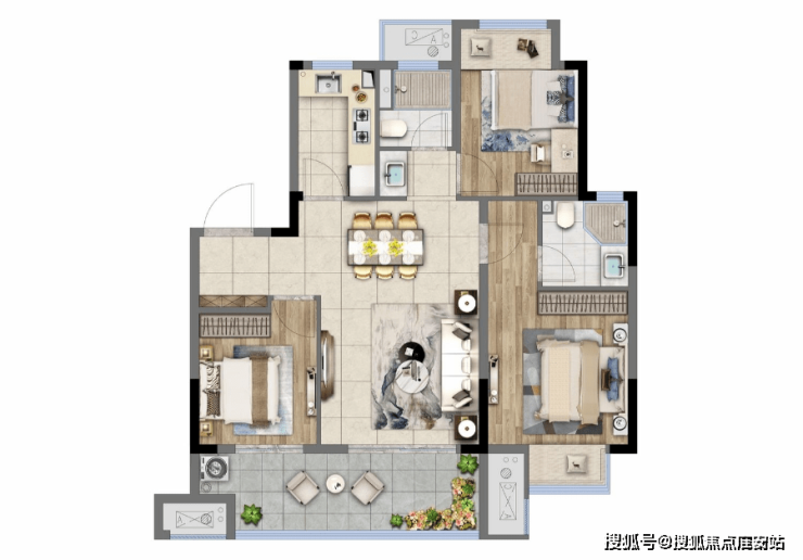 一般来说,建面约100m²以内的户型如果做三房设计的话,都会面临房间小、没有玄关等问题,要么就是少一个卫生间,所以小户型在设计上,更考验房企在设计上平衡舒适性和功能性的能力。