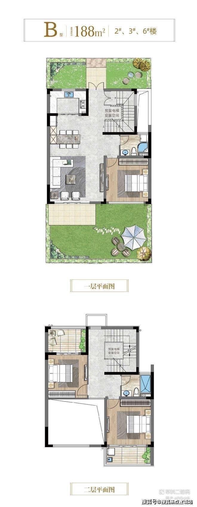 ➤前庭后院·藏纳四季天地一屋一天地,一生一境界.别墅的庭院,四季皆是不同的风景,在这风景中,与家人一起烧烤、聚餐享受悠闲的时光,与朋友一起品茶、畅谈,趣享生活精彩.每一间卧室,也都是一个独立天地;宽敞的空间,配备着独立的卫生间和衣帽间,生活舒适且惬意.
