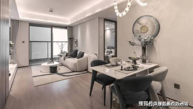 约6.4米长的双联景观阳台,连接着阔绰的客厅,一进门通透又明亮,