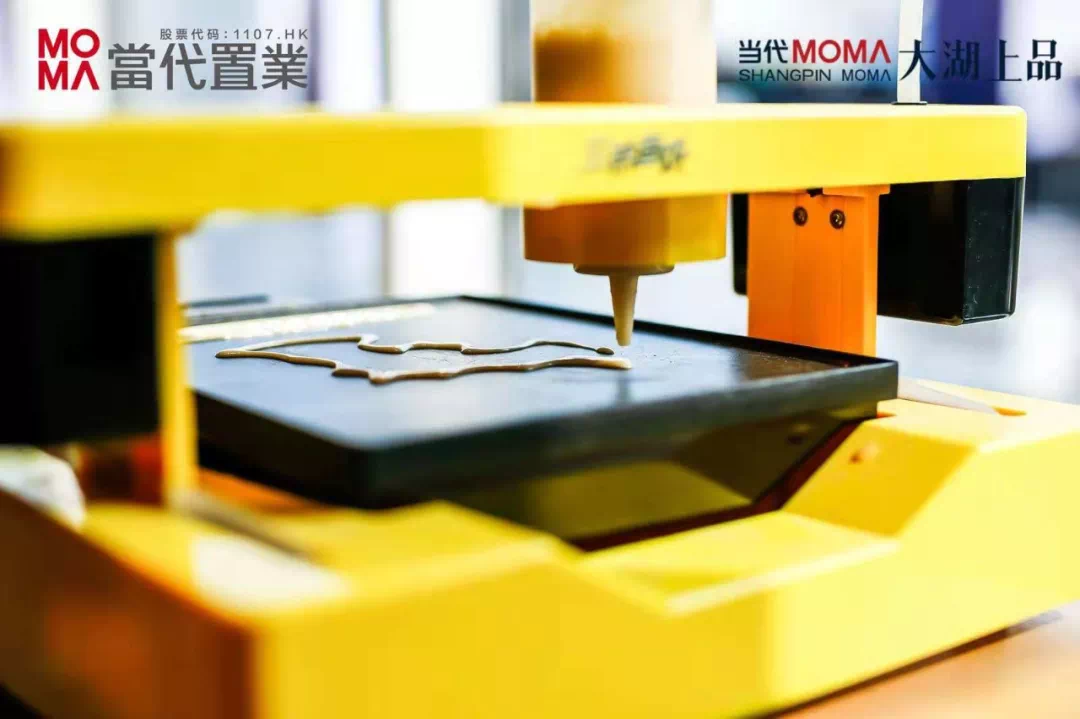 3D科技打印巧克力,不需要模具和手工辅助工具,便可以打印出由操作者设计的各种巧克力图形。现场来宾参与踊跃不止。
