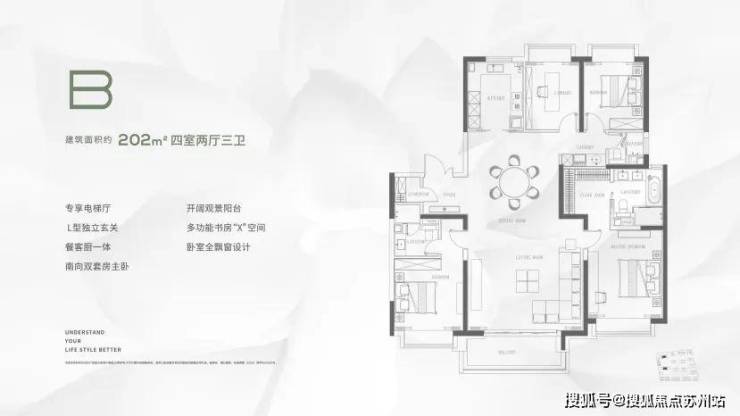 与市面上的多数高层住宅相比,「缦云上海」四叶草式户型布局,不仅户型均好性更强,更有利于空间独立和私密性,其空间尺度感与功能细节也是做到极致。
