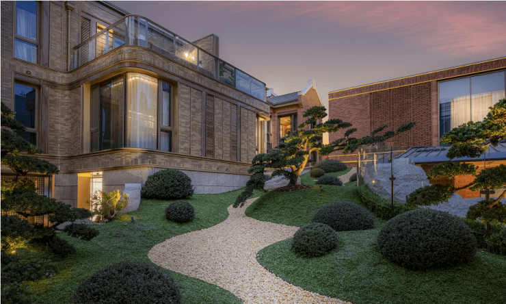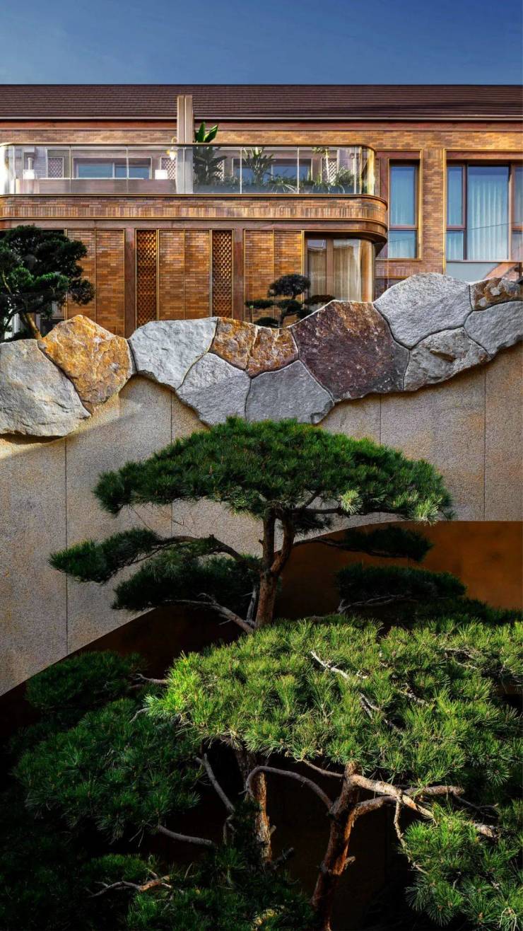 为了使我们在稀缺的地段营造稀缺的资源,把生活的想象现实化,越秀·外滩樾还在会所引“山水入园”.在空间有限的情况下,进行垂直空间的挖掘,营造了坡道景观、山水庭院和会所.