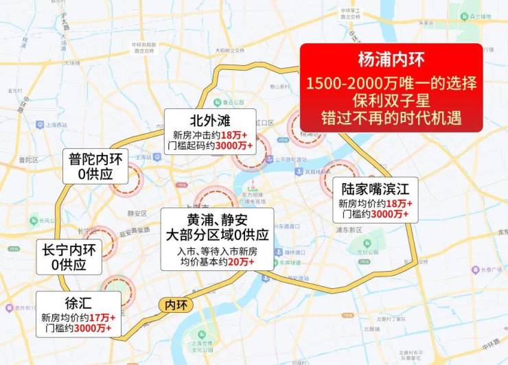 ①上海内环总面积仅占全市陆域面积的约1.8%,是上海开埠百年的城市核心原点,开发早已饱和,没有任何扩容可能;