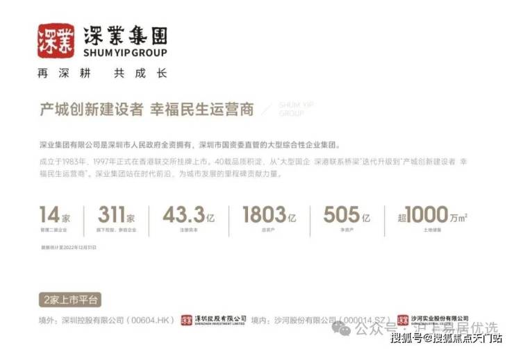 深业集团是深圳市人民政府全资拥有,深圳市国资委直管的大型综合性企业集团,成立于1983年,1997年正式在香港联交所挂牌上市.