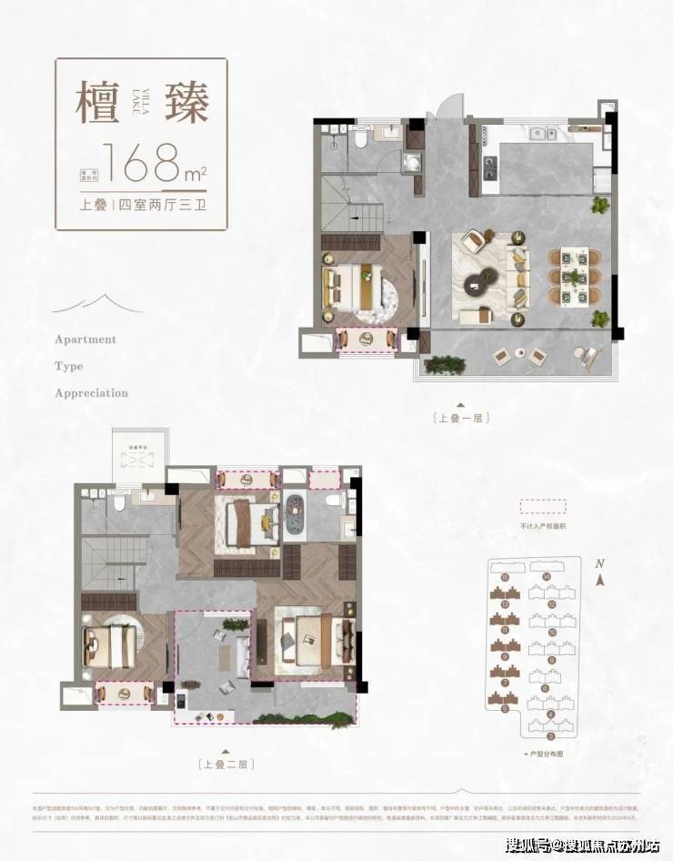 (3#5#7#9#11#13#小叠)上叠建面:168平,四房两厅三卫(送13.5平露台)