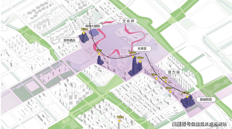 未来塔:位于CAZ的正中央,建成约300米,将成为嘉定甚至是上海西北第一高楼,是真正的C位地标