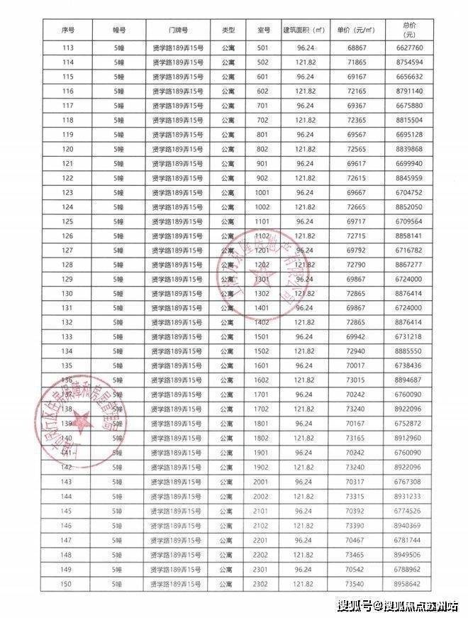 一房一价表