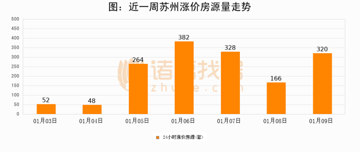 根据诸葛找房数据显示,苏州24小时涨价房源量为320套,较01月08日增加154套,环比上涨92.8%。与此同时,涨价房源占比小幅扩大,业主信心有所提升。