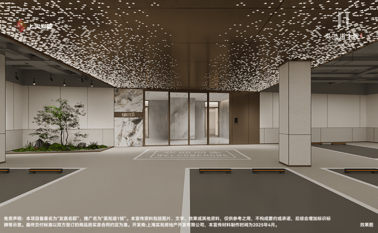 当多数地库还停留在满足基础功能性阶段,吴淞道1號已将车库升维成艺术归家剧场.相比传统车库窄车道与压抑管线外露设计,项目以约5.5米宽阔车道搭配格栅吊顶,利落线条消解逼仄感,行车视野更开阔,会车更轻松从容.