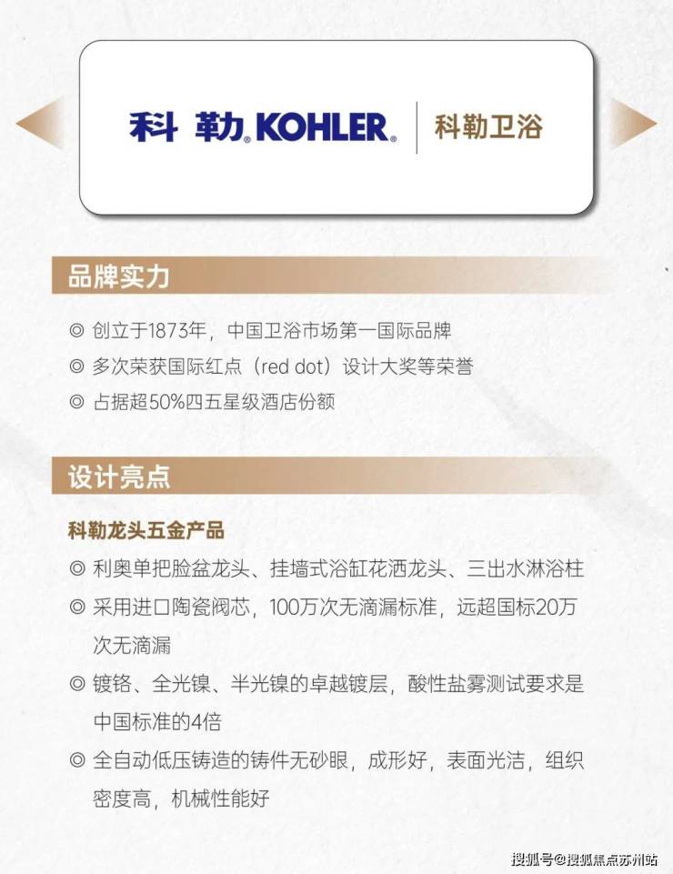 ·全球十大洁具品牌之一:科勒卫浴,以一百四十余年的制造经验缔造品质卓越、尊贵高雅的卫浴享受,笠泽之星选用“台盆、花洒、浴缸、龙头、壁挂式马桶”,为家庭成员提供一个更加舒适、便利的卫浴环境。