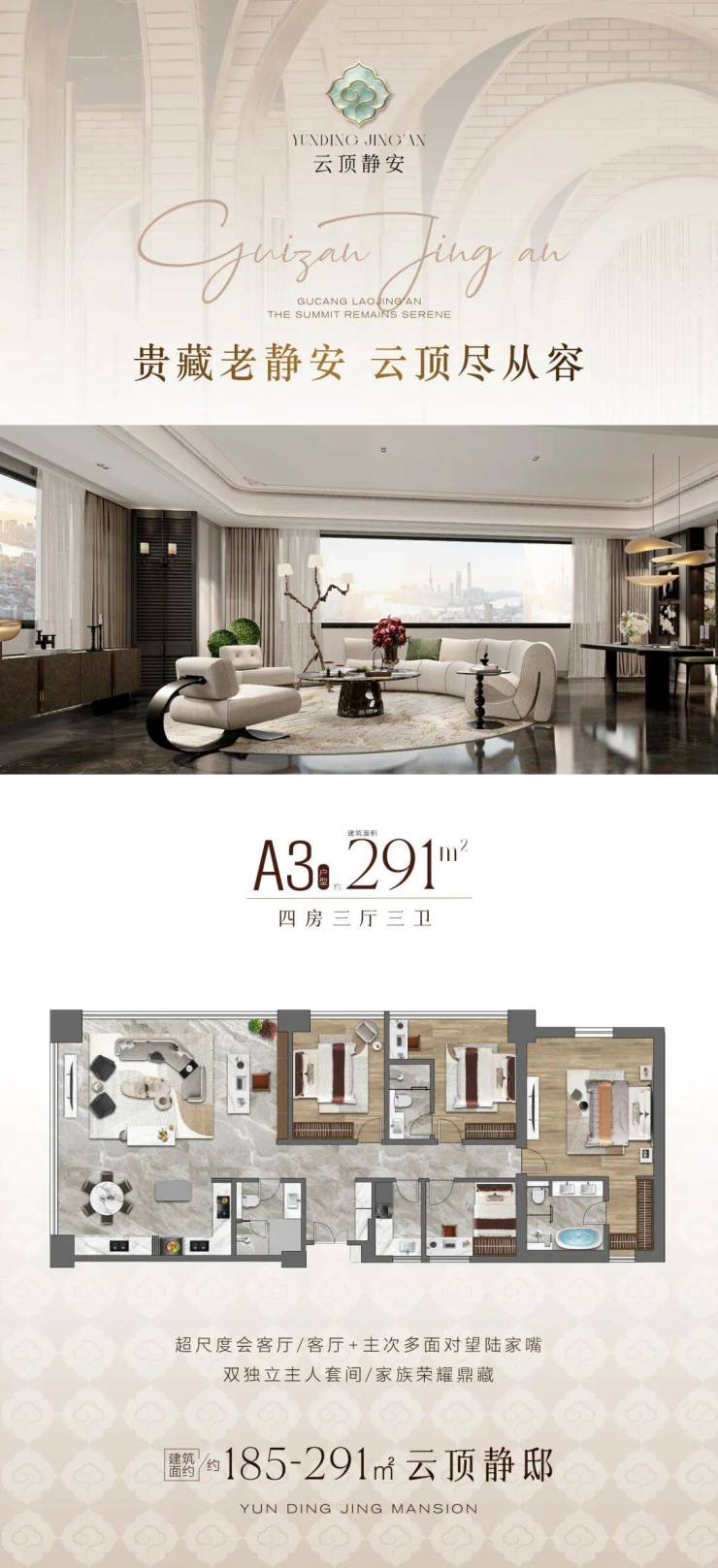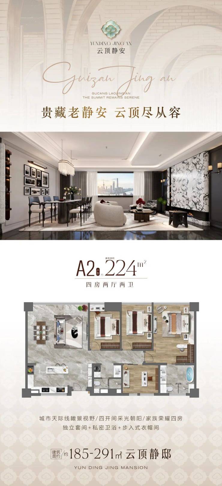 老静安南京西路[云顶静安]建面约185-291㎡,精装通燃气,新风,地暖,全屋智能大平层!