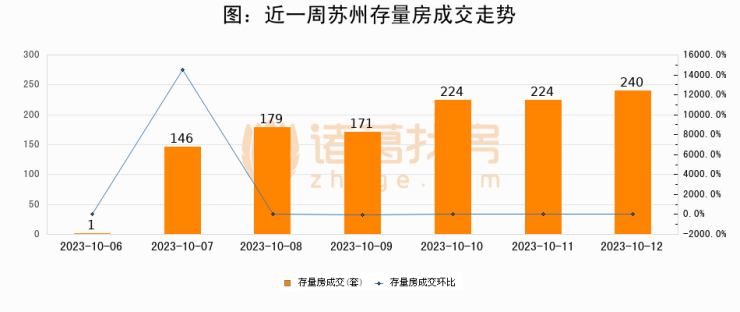 从存量房来看,2023年10月12日苏州存量房单日成交240套,比昨日增加16套,环比上涨7.1%。从近一周存量房成交来看,苏州存量房日均成交套数为169套,10月12日单日成交240套,高于近一周平均水平42%。