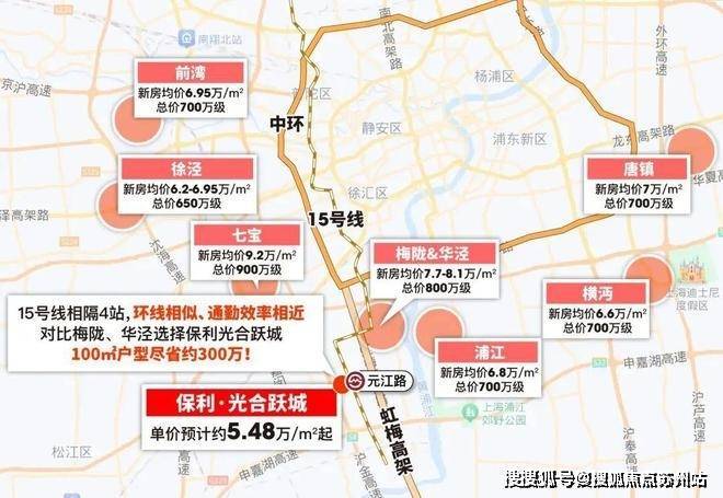 自驾的话,项目紧贴虹梅路高架,3个红绿灯即上中环!凭借虹梅路高架的优势,项目其实和华泾、梅陇、七宝处于同一价值环线。如今梅陇、华泾的新房单价都在8万左右,而保利·光合跃城,距离梅陇华泾仅4站地铁,自驾通勤效率与前者相差无几,100㎡户型几乎能节省近300万,性价比不言而喻!