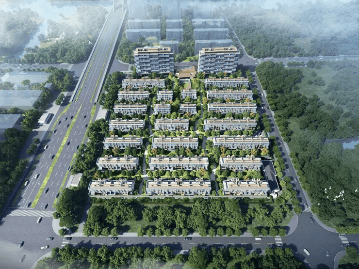 项目总占地约3.7万㎡,容积率仅1.25,远低于吴中区平均2.0以上的水平,营造出稀缺的低密度居住氛围。规划住宅共24栋,包含22栋4层叠加别墅(建筑面积约167–188㎡,毛坯交付)与2栋11层四代宅洋房(建筑面积约141㎡,精装交付),总户数约282户,产品结构清晰,目标客群明确为追求品质生活的改善型家庭。