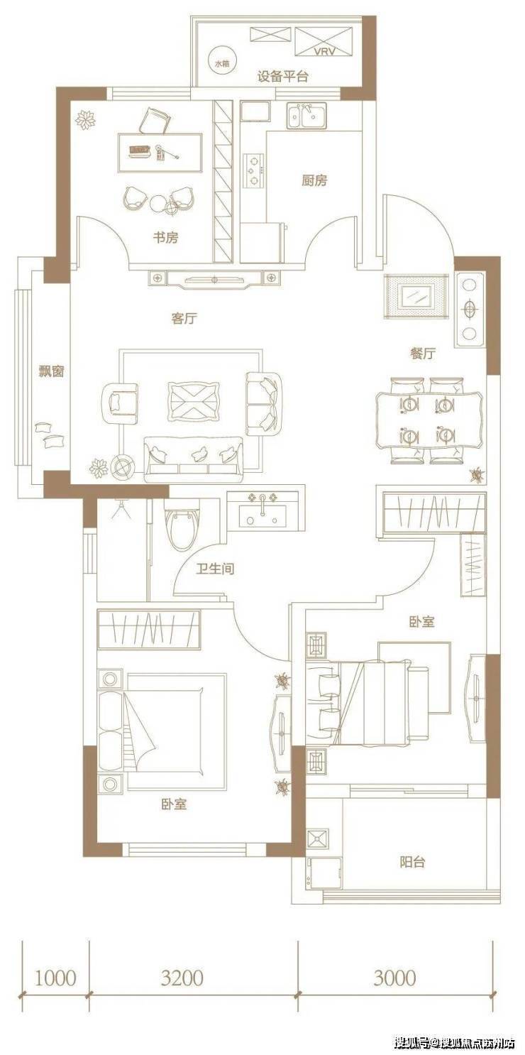 另一个主力三房户型,建面约103㎡,如果要为它的舒适度打分,几乎可以打满分。