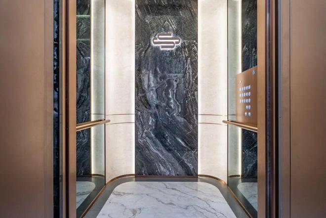 轿厢内部精选的大面积奢石与质感金属相得益彰,共同营造出一种堪比豪宅室内装潢的低调奢华感,每一次乘坐,都是一场视觉与触觉的盛宴。