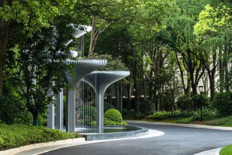 你一定也会和我一样,在入口处停留片刻,流水装置被设计成大树的形状,藏身于密林之中.好似一个艺术瀑布,让夏日浮躁之感没了踪影,水流之声与鸟鸣奏乐,别有一番都市森林之感.