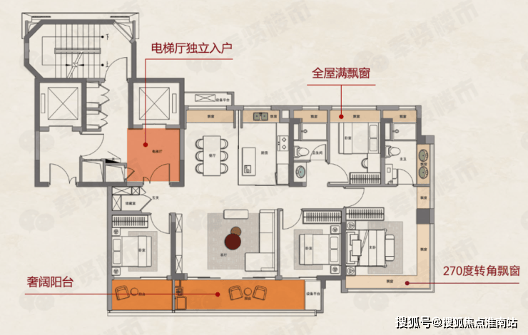 边户独有的270°转角飘窗全景主卧套房,更是将稀缺景观资源私有化.客餐厅阳台一体化设计,让家庭互动畅通无阻.室内采用一线品牌精装交付,注重细节品质.
