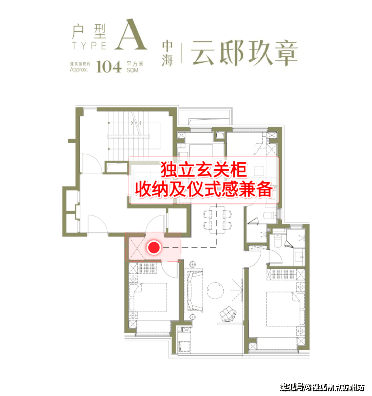 下面我们重点来看开放样板间的建面约104㎡3房和建面约148㎡4房户型: