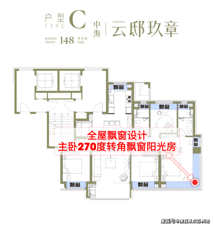亮点④全屋飘窗设计,主卧270度转角飘窗阳光房!