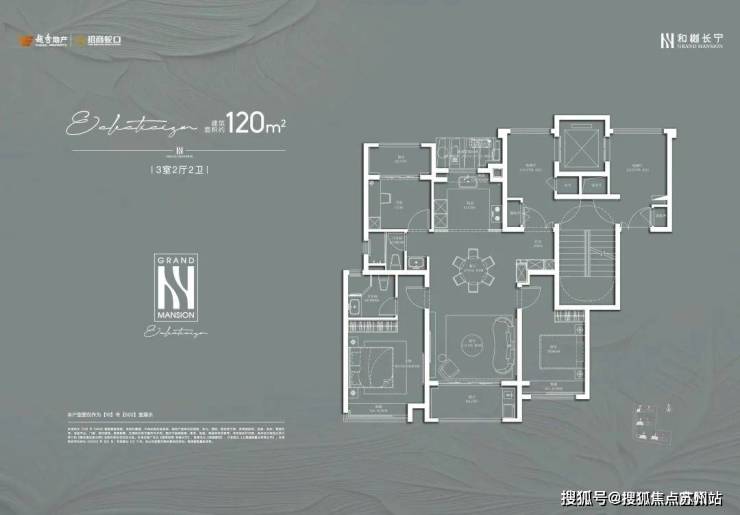 建面约120㎡3房2厅2卫:
