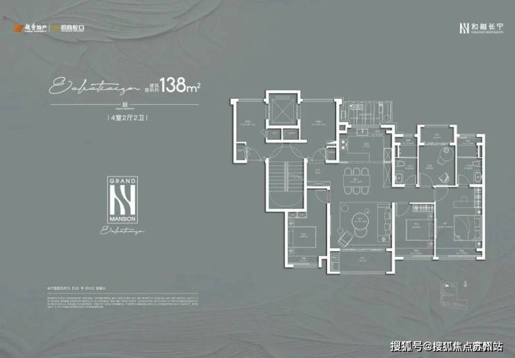 建面约138㎡4房2厅2卫: