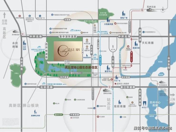 云上流光位春申湖快速路一线,速达姑苏区、园区、新区等都会圈。承接中环房价3W+发展趋势,潜力无限。项目毗邻虎丘湿地公园生态绿境,不可复制的自然生态+丰富产城规划,对标纽约中央公园、伦敦海德公园、上海世纪公园,拥有更大体量,发展前进可期。