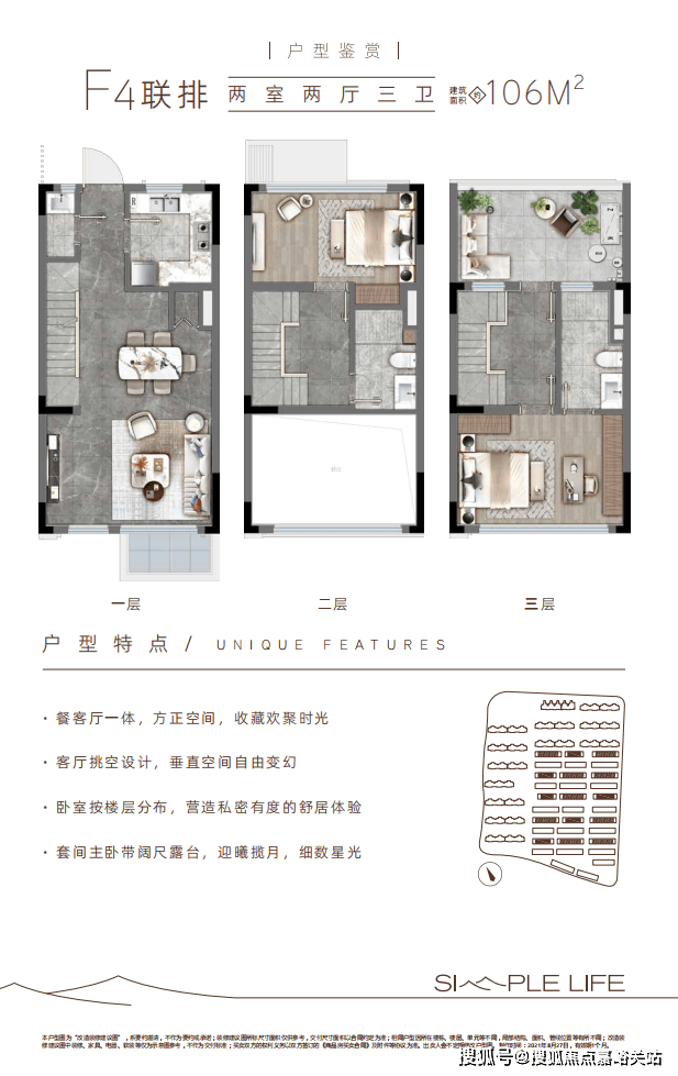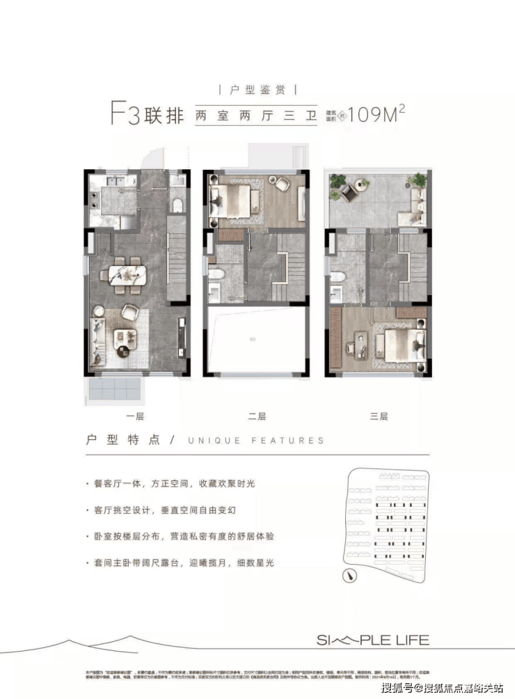 项目在售房源仅剩数十套建面约106--109㎡的联排别墅,总价预计375万起就能上车