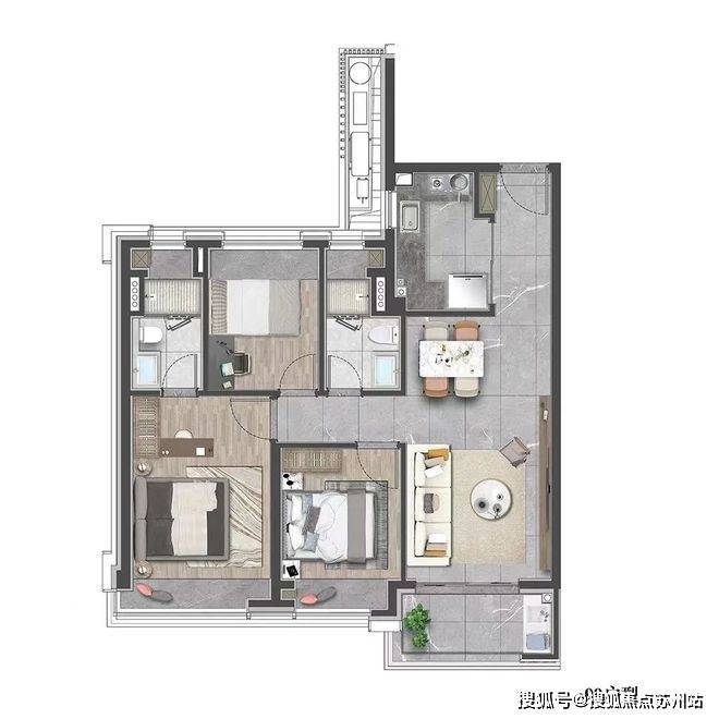 建面约99㎡的3房2卫设计,各个空间的尺度感更大,中环云悦府售楼处电话:400-8123-664主卧套房设计,保证了主人的私密空间。大尺度的空间也为不同家庭结构和不同功能需求提供了更多的拓展性和可变化性。