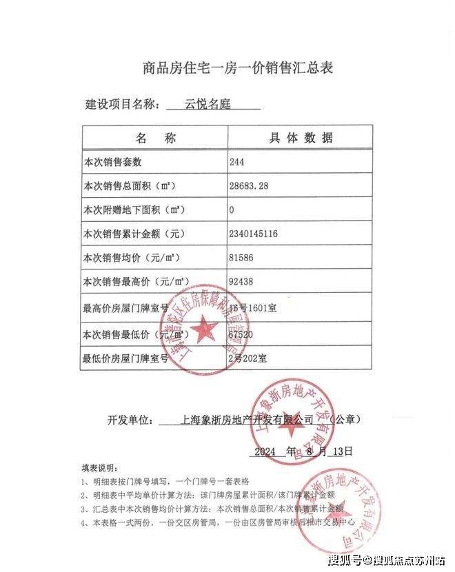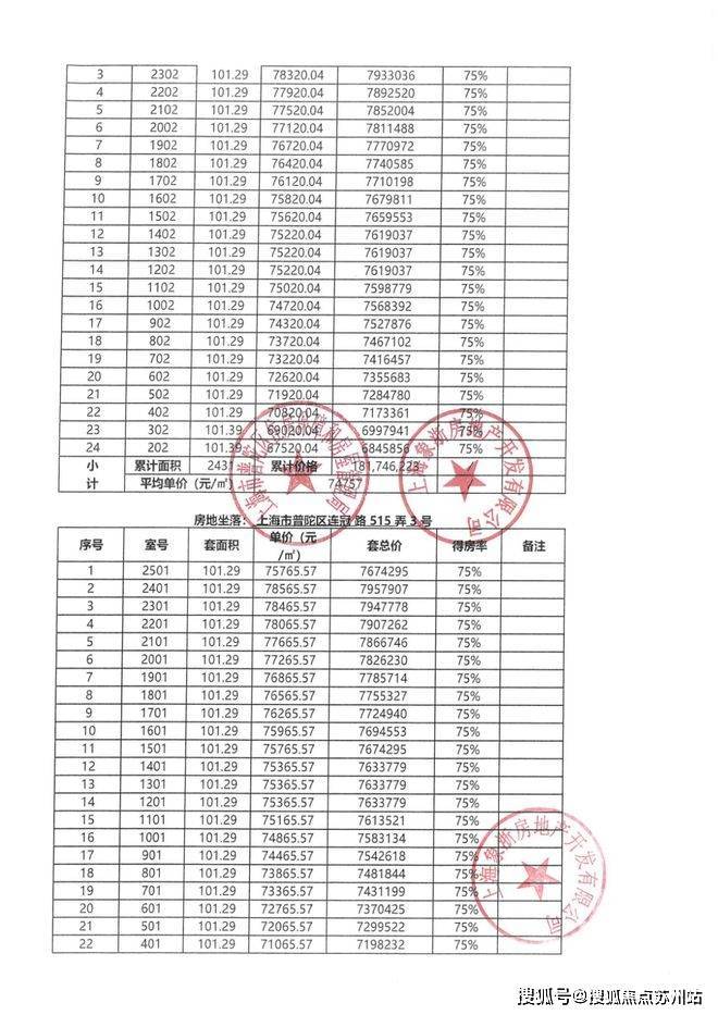 本批次一房一价表如下