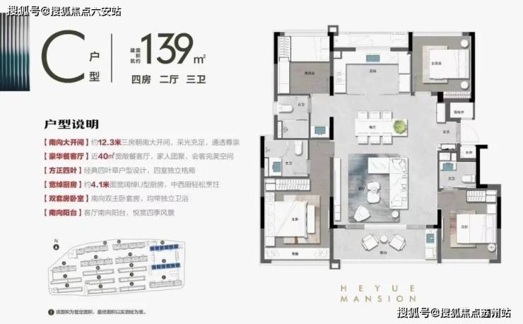 杭州前程和悦府售楼处电话☎:400-8828-814(售楼处预约看房热线)约139㎡户型还有一个很大的亮点,设计了双主卧套房!南向两个卧室均带独立卫生间,整个户型拥有3个卫生间。