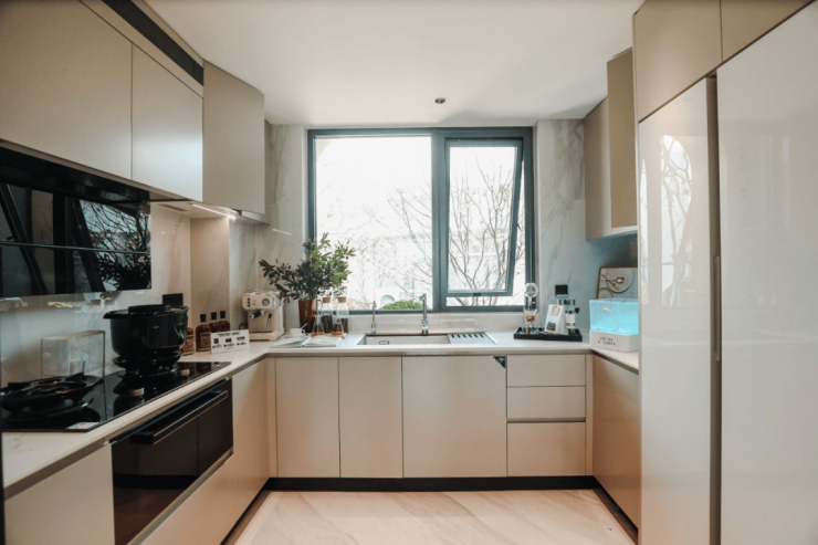 厨房设计特别贴心,U型布局让洗菜、切菜、炒菜动线顺滑到飞起,家里来客人时也不用担心油烟乱窜.