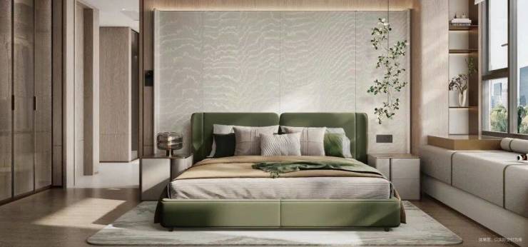 主卧带270°转角飘窗,采光好到像住在玻璃房里,睡前看看风景、放点绿植,连衣柜都能省地方.次卧放下大床+双开门衣柜+俩床头柜,空间还富余!儿童房飘窗改成学习桌,衣柜直接做到顶,孩子从幼儿园用到上大学都不用换房.
