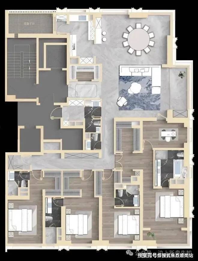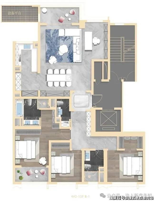 尤其主卧星级套房,配置独立衣帽间、书房,奢华主卫四分离,双台盆+淋浴区+大浴缸+智能马桶,私密性&奢适度无敌;