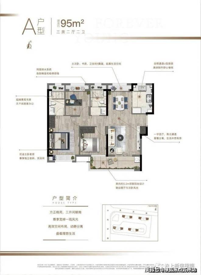 建面约95㎡3房2厅2卫