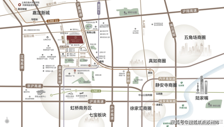 交通方面,项目距离地铁11号线陈翔公路站不到400米,拥有“双轨交”(11号线+嘉闵线)+“双高速”(沪嘉高速+嘉闵高架)的配置,还有规划中的南翔枢纽,未来将是嘉定第一个3线换乘枢纽,可便捷通达虹桥、上海市中心等地。
