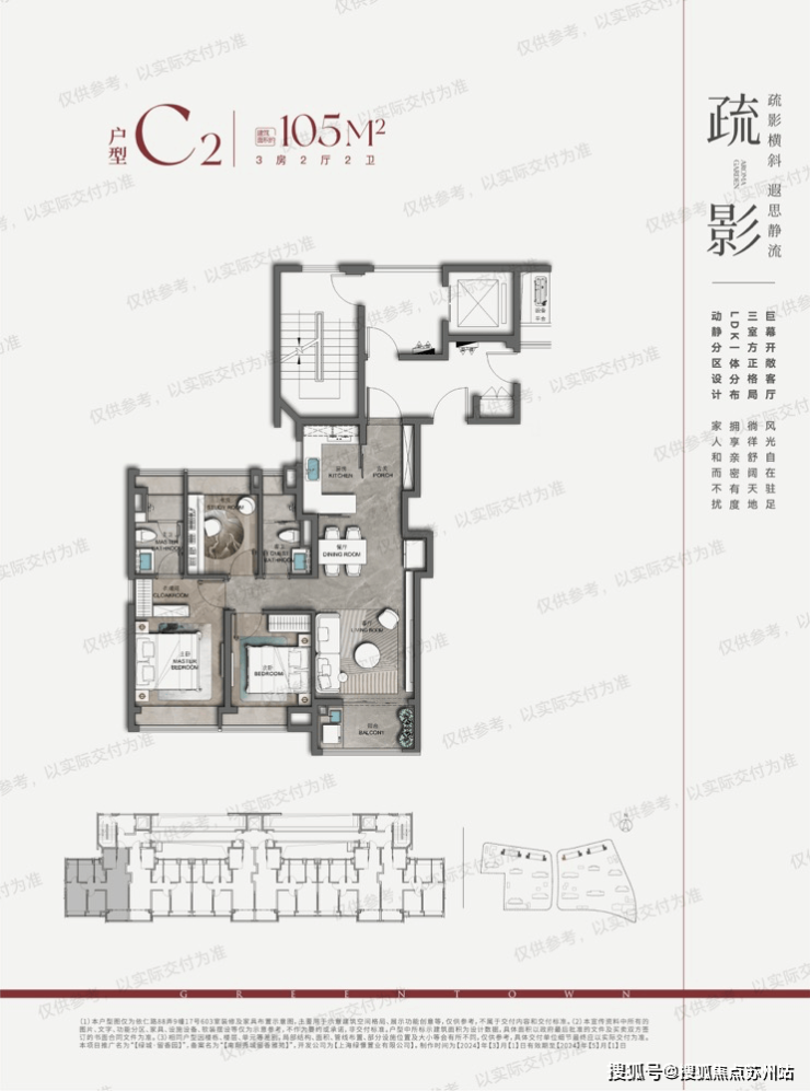 功能性做到3房2卫,适配市场主流需求,主卧套房设计,私密性舒适度兼具;