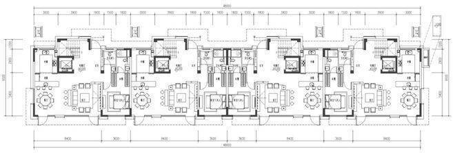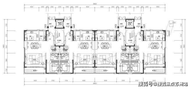 280㎡联排一栋4户,南向面宽均为12米,一层客厅开间约8.4米。