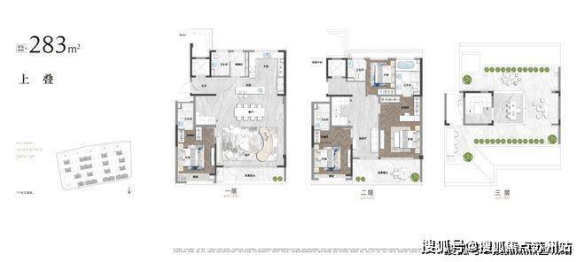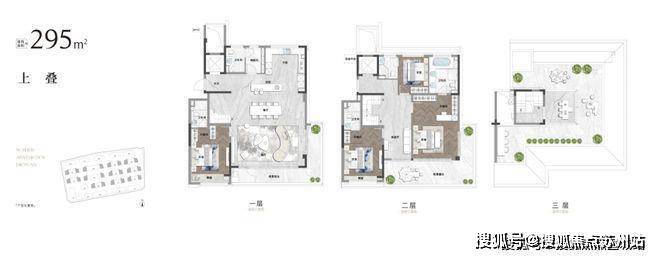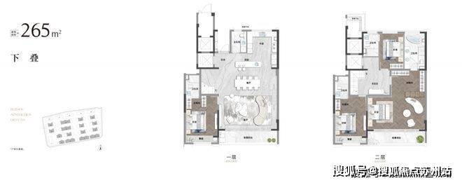 官方户型图首次曝光,叠墅建面约265-295㎡。