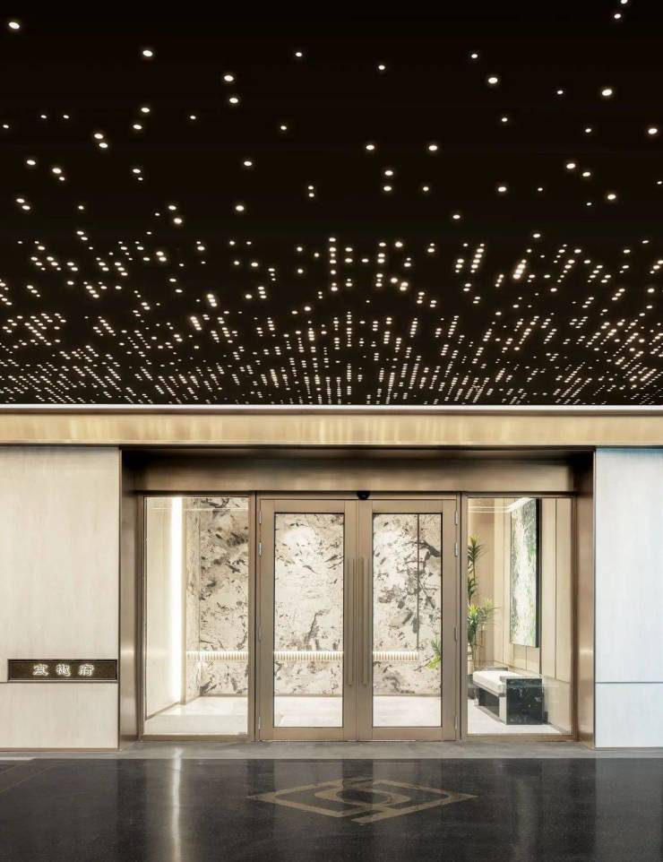 这座科技府宅,把仪式感做到了极致。归家有三道门,主门是近8米高的紫铜大门,气派非凡。社区里还藏着一个高端会所,健身房、书房、会客厅一应俱全,是业主的私享社交场。