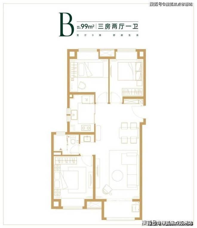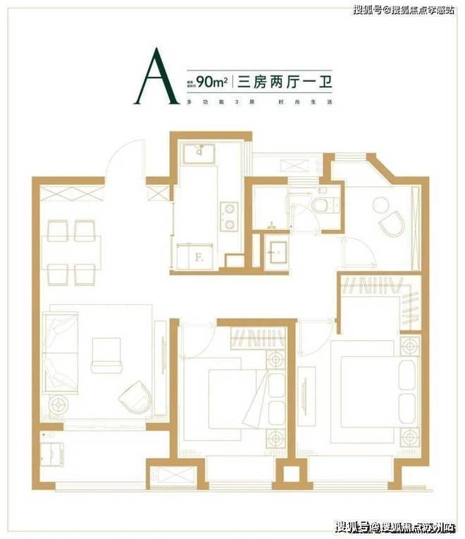 约90㎡3房2厅1卫样板间照:
